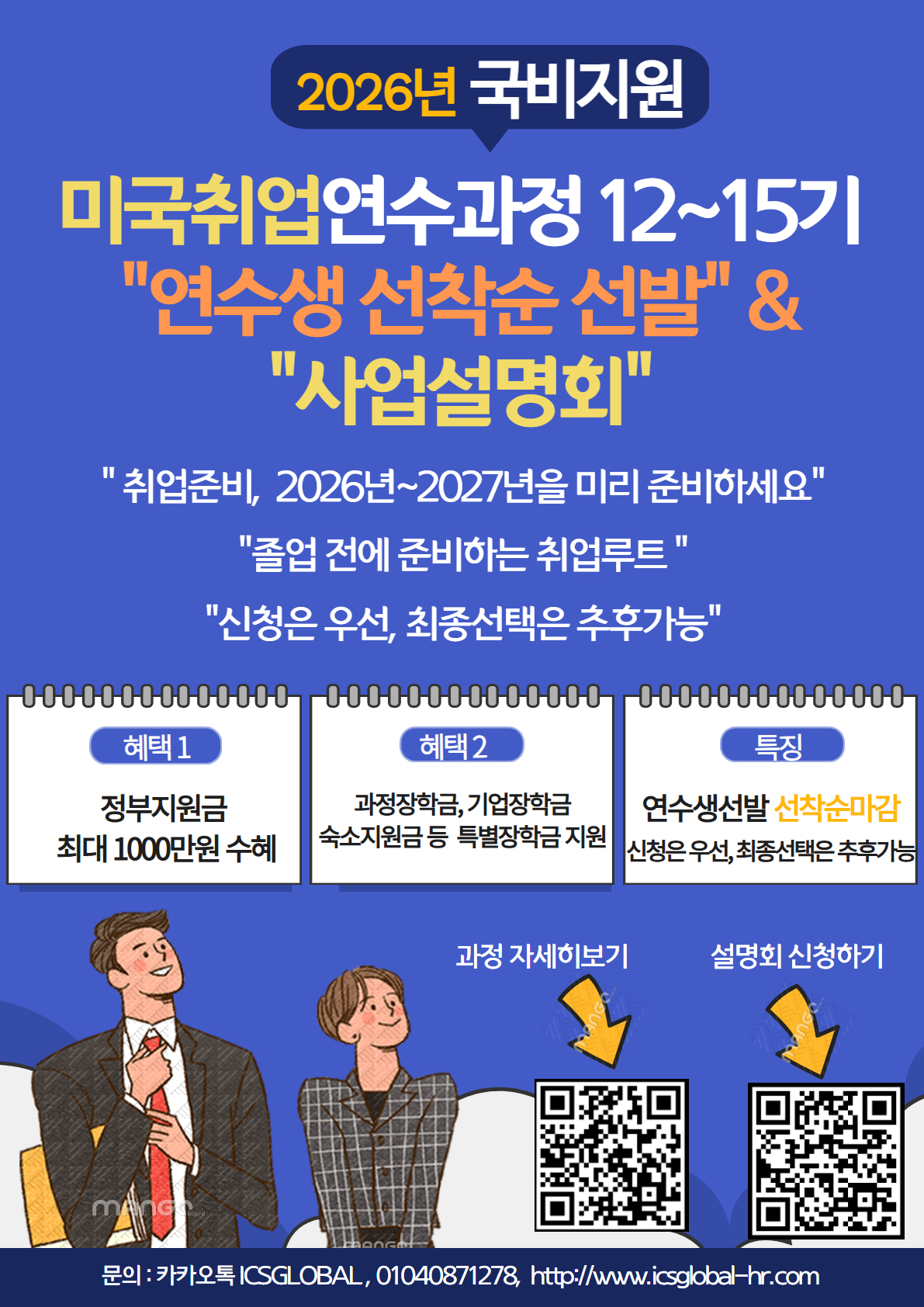 2026년 국비지원 미국취업연수과정(우수과정) 모집 및 온라인 설명회 안내