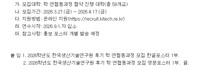 [한국생산기술연구원] 2026학년도 후기 학·연협동 석·박사학위과정 학생연구원 모집전형 시행에 따른 홍보
