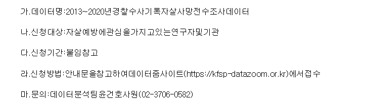 한국생명존중희망재단 데이터 이용신청 안내 및 홍보