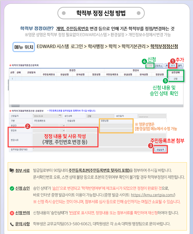 학적부 정정 신청 방법 변경 안내