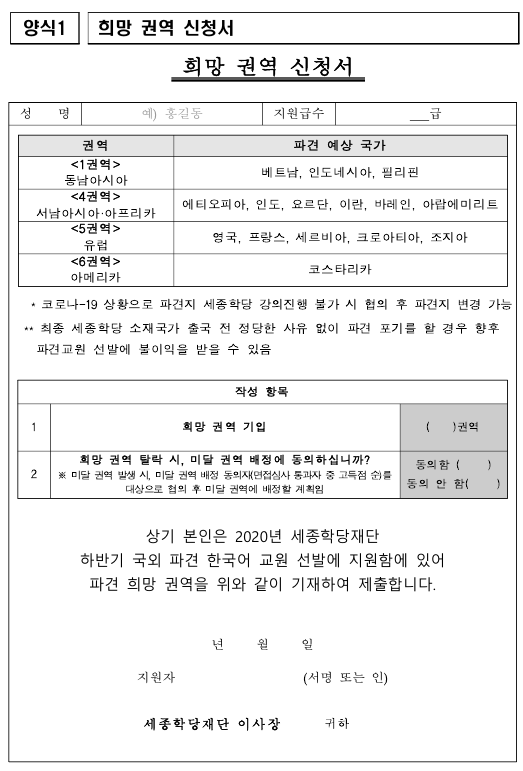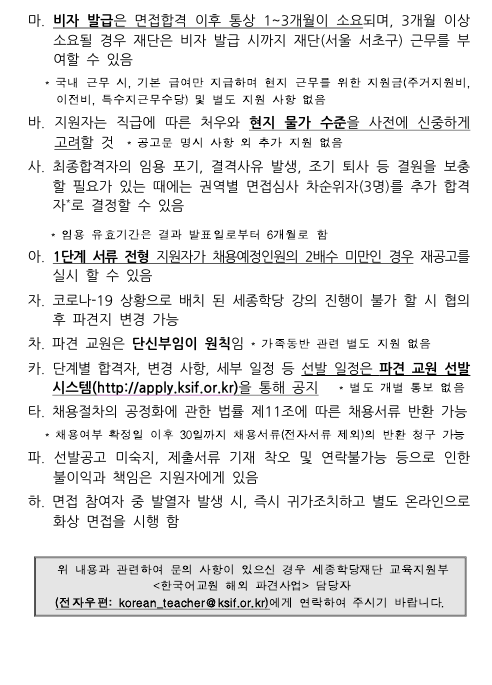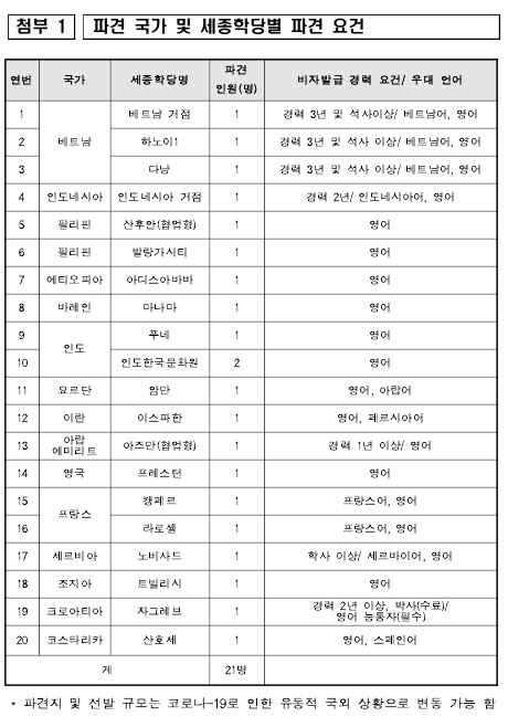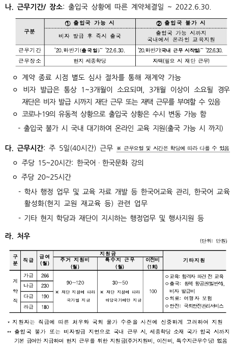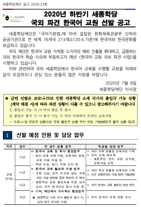 2020년 하반기 세종학당 국외 파견 한국어 교원 선발 공고
