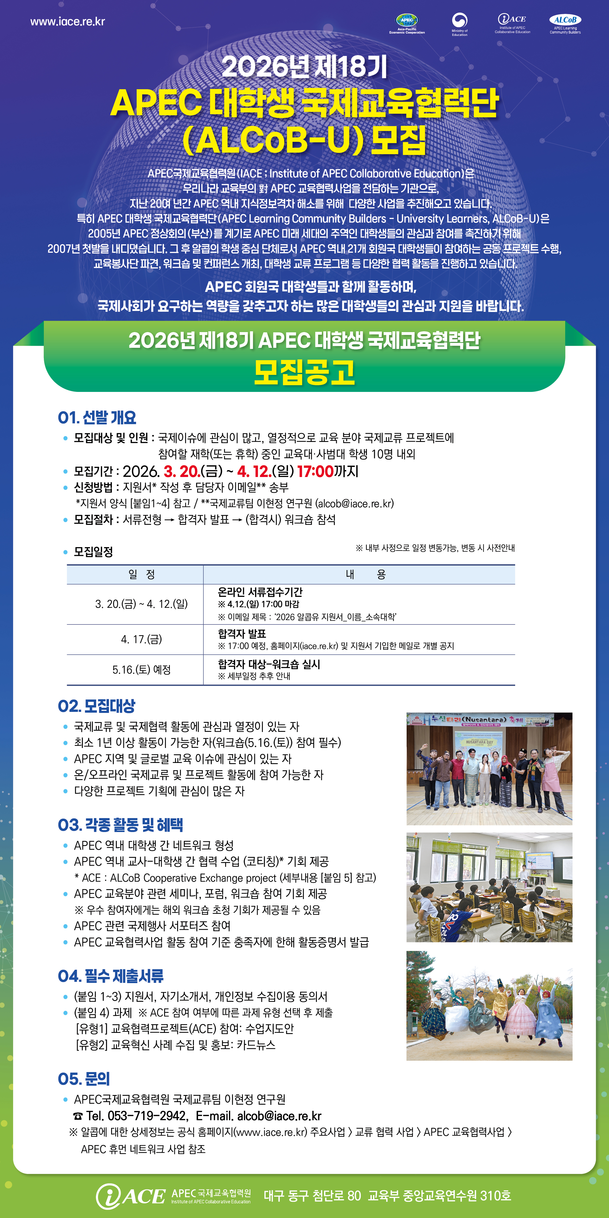 2026년 제18기 APEC 대학생 국제교육협력단(ALCoB-U) 모집
